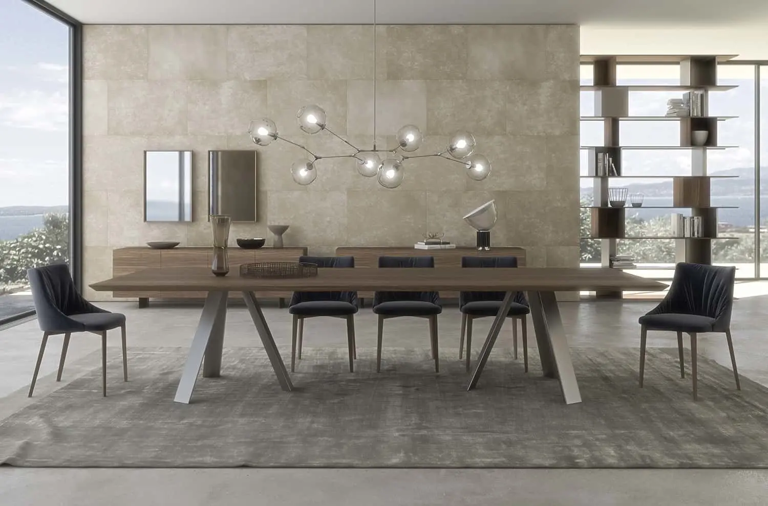 Ki è un tavolo il cui concept è ispirato alla leggerezza e all’essenzialità. Un giusto equilibrio tra forma e funzione caratterizzato da poche ma decise linee che trasmettono solidità e rigore e dalla base a raggiera in metallo verniciato. KI (= giapponese: energie vitali dell’universo) evidenzia una elaborata e raffinata semplicità particolarmente adatta ad arredare con gusto contemporaneo e atmosfere confidenziali le stanze del living.