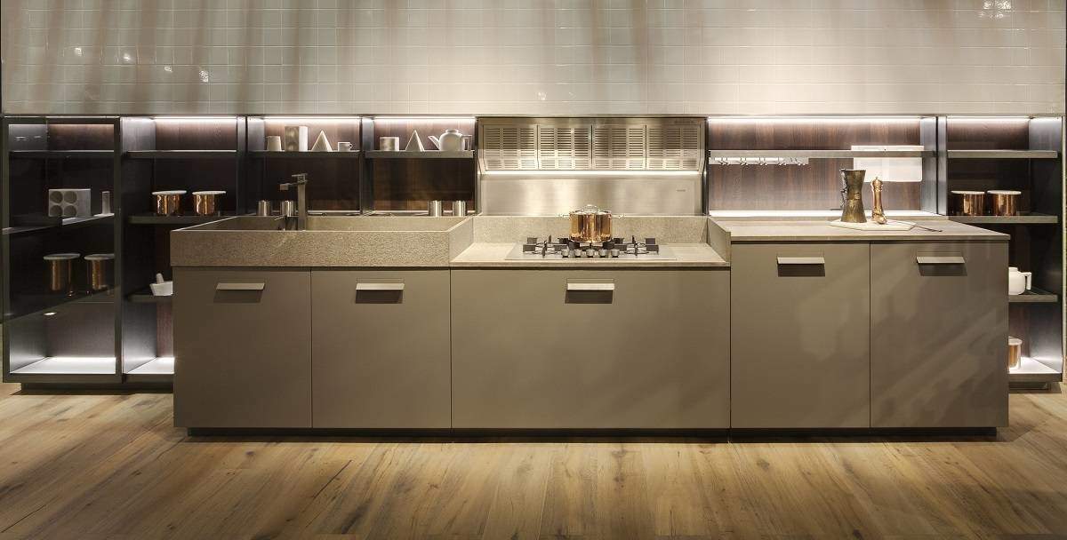 La novità principale è rappresentata – per tutti e tre i programmi di cucina – dai materiali e dalle finiture, a partire dalla gamma dei metallix e dei colori laccati effetto metallo. Sono state introdotte anche nuove tipologie di vetri, tra cui una particolare versione diamantata, nuove finiture – titanium, cacao e umber – e per marmi e pietre – il marmo Calacatta in versione semilucida, il Breccia imperiale semilucido, il Sahara e il Toffee brown leather, la Pietra Piasentina fiammata e la Pietra Santafiora semilucida.