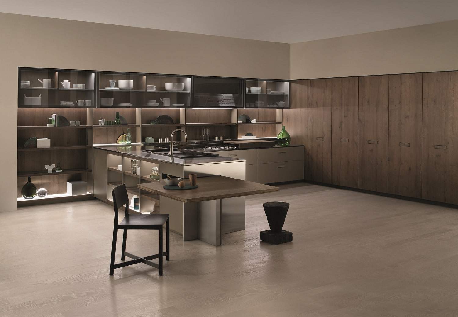 In alternativa a Cyclos, Soul può essere dotata del nuovo Tavolo SteadyTable, contraddistinto da vani a giorno che possono essere accessoriati con contenitori di cuoio, funzionali per l’uso in cucina e allo stesso tempo in grado di evocare l’eleganza di uno scrittoio.