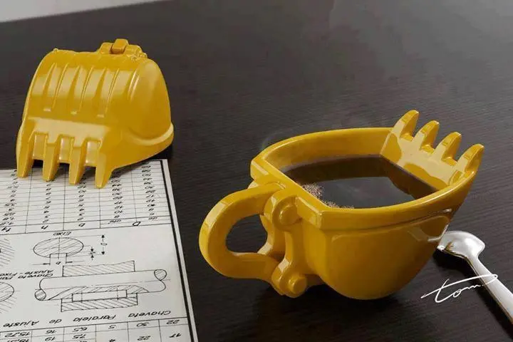 Excavator Mug, una tazza a forma di pala d’escavatore, è l’ideale per un caffè in cantiere insieme agli operai.