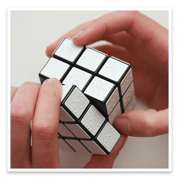 FEEL: Rubik Cube Braille 28 Feb 2021 Antonio Italia Total0Konstantin Datz ha realizzato questo speciale Cubo di Rubik per non vedenti: al posto dei colori delle facce (tutte bianche) ci sono scritti i colori in Braille. Ora è davvero un cubo magico.