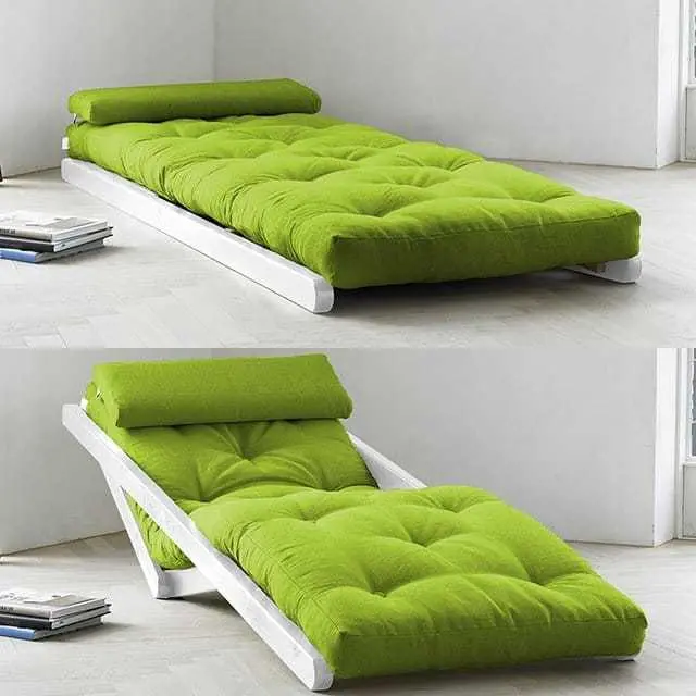 Figo Futon Chaise Lounge è una poltrona con telaio in pino massiccio che si trasforma facilmente in un comodo letto.