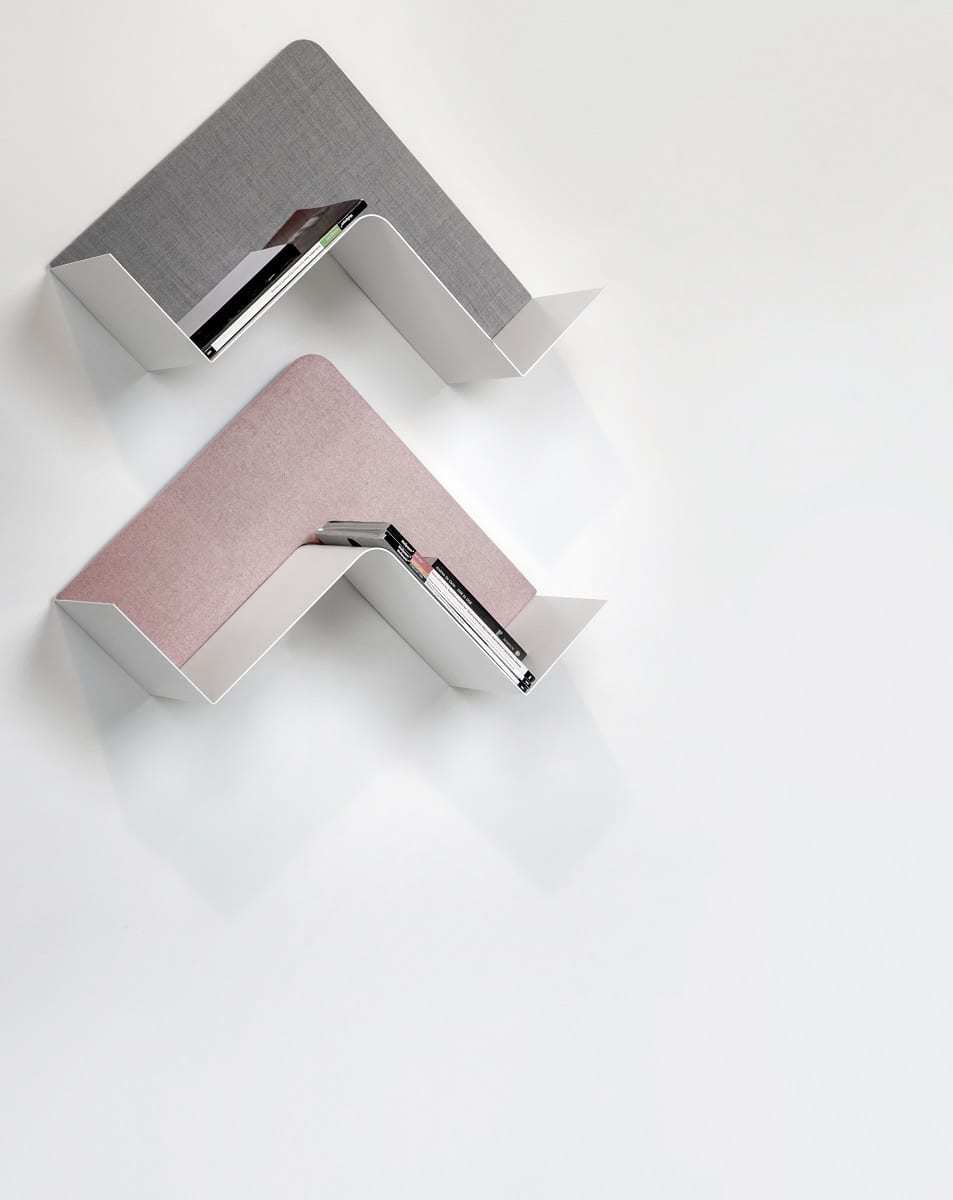 FISHBONE è un parcheggio pronto ad accogliere chi arriva da qualsiasi viaggio ma è anche un trampolino di lancio verso nuovi percorsi creativi, nuove ricerche e infinite invenzioni. E’ una mensola che contiene già nella sua forma, nel rigore geometrico della lamiera curvata, nel calore elegante del legno e nelle variazioni cromatiche dei tessuti di fondo, il DNA di tanti progetti possibili.