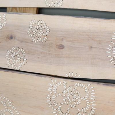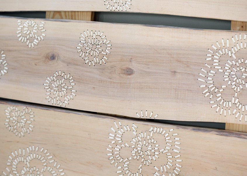 Un ricamo che abbandona i tessuti e si proietta nello spazio, sfruttando la naturalezza e la versatilità del legno. L’artista Monika Jarg rompe con la tradizione, fondendo l’antica arte del ricamo con la modernità e l’innovazione; le sue opere prendono forma in pannelli di legno ricamati, da appendere alla parete o posare sul pavimento.