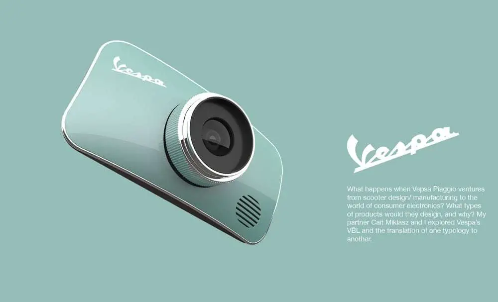 Fotocamera digitale “Vespa”: un concept ispirato al design italiano! I designers Rotimi Solola e Cait Miklasz hanno proiettato ai giorni nostri uno dei simboli dell’industria automobilistica anni 50’ e della creatività made in Italy, vestendo la tecnologia con stile ed eleganza.