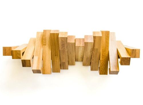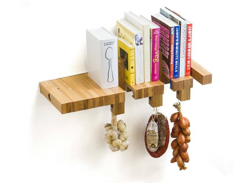 I #designer dello studio inglese andViceVersa hanno realizzato Fusillo Bookshelves, una mensola modulare con elementi progettati per ruotare attorno ad un asse centrale e fornire supporto per i libri oppure per appendere abiti, bici ecc.