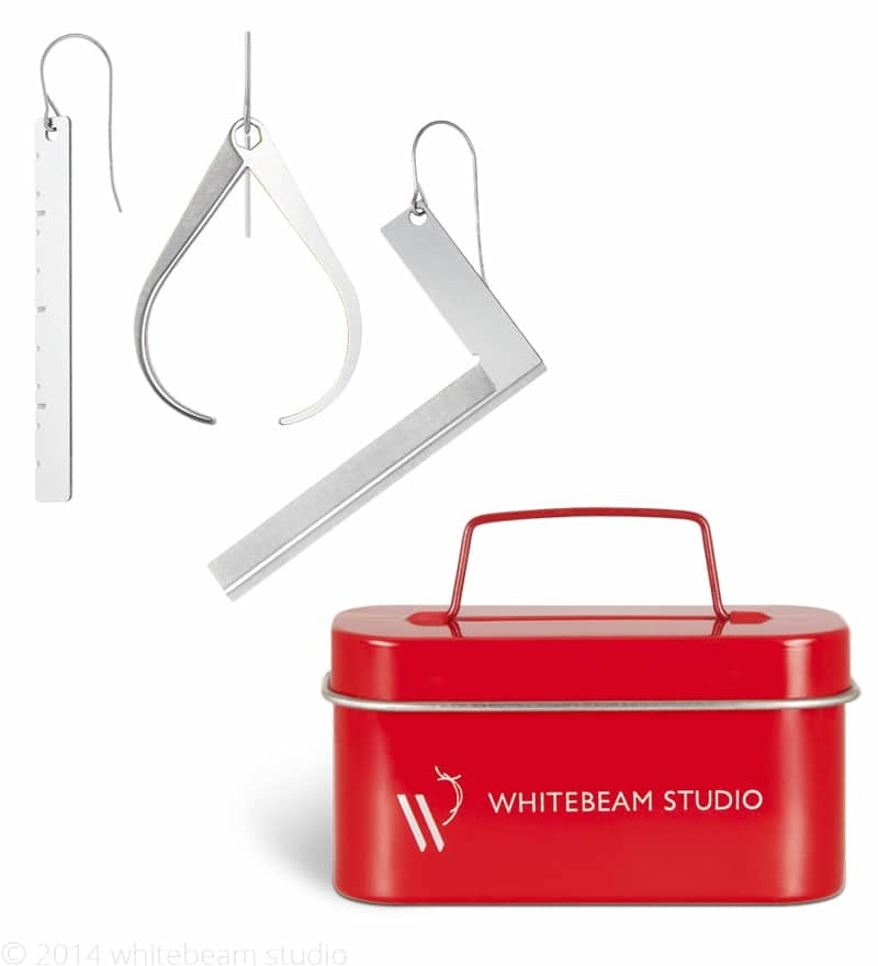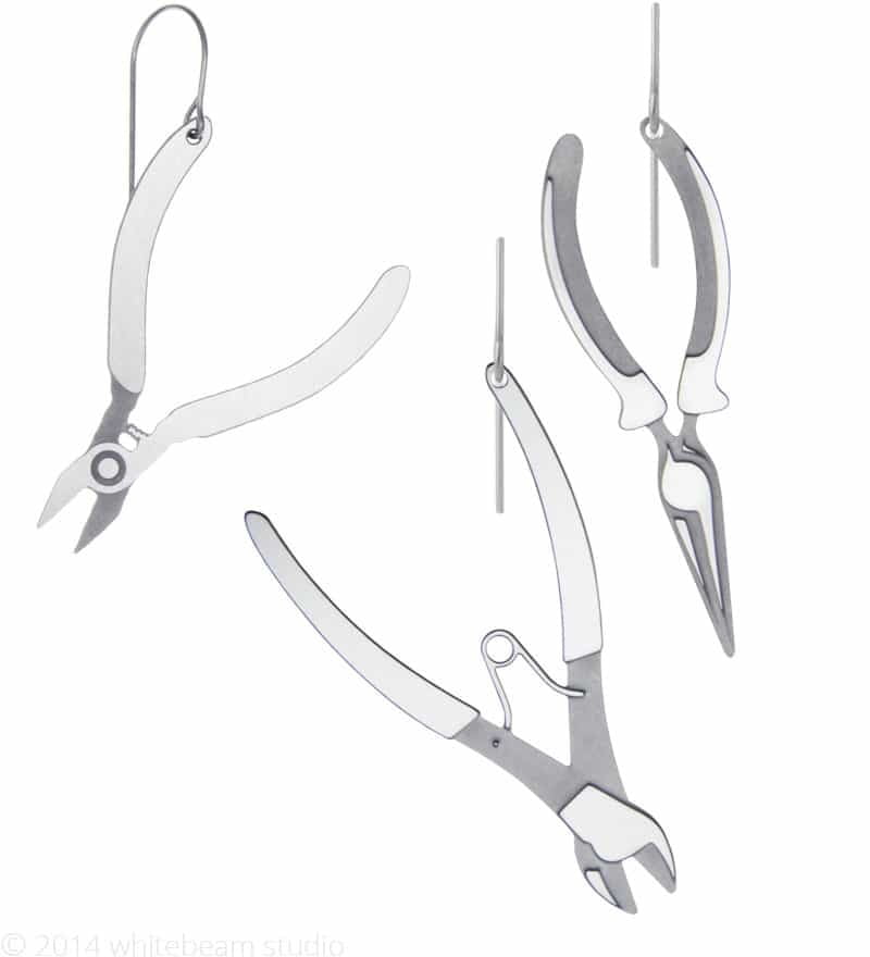 Attrezzi e strumenti da lavoro saltano fuori dalla cassetta degli attrezzi per diventare ciondoli ed orecchini.
