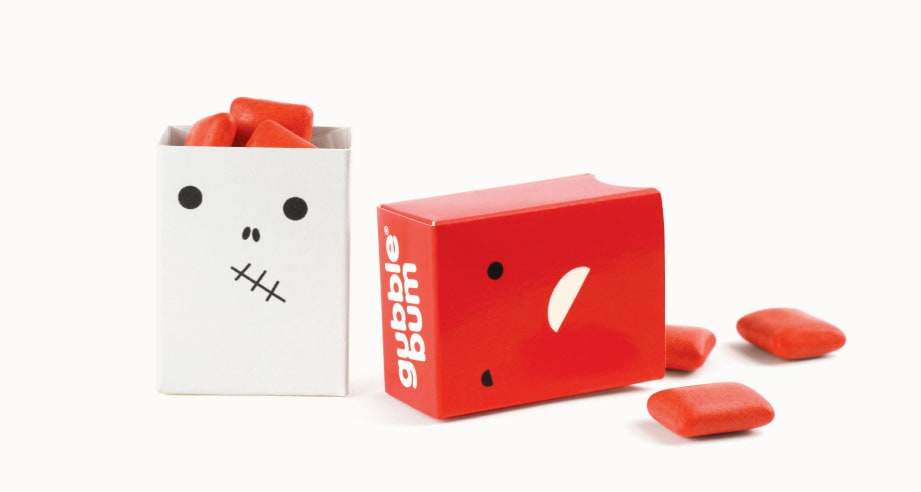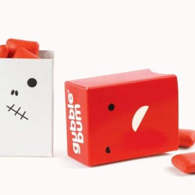“Gubble Bum” disegnato da Jesse Kirsch, è un packaging per le confezioni di gomma da masticare. Sotto la bizzarra e colorata parte esterna si trova una sorpresa inaspettata: la rimozione della scatola esterna rivela lo scheletro di ogni “bum”.