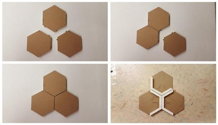 La lampada ha una struttura modulare ad incastro, formata da elementi esagonali, dotati di più magneti che veicolano il passaggio di elettricità.