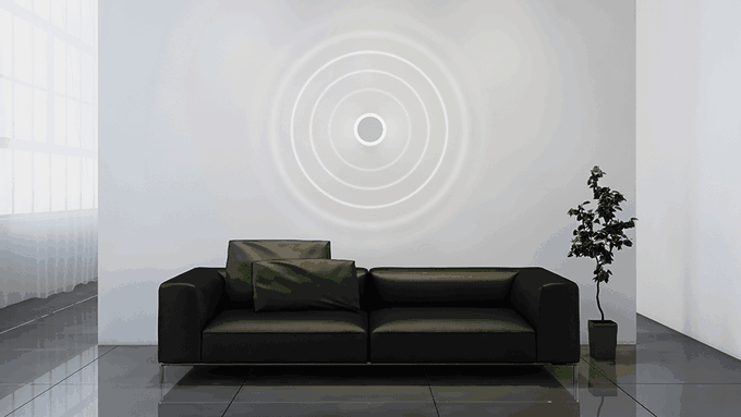 Gli altoparlanti analizzano l’ambiente, regolando in modo dinamico il profilo audio per adattarlo allo spazio. Le frequenze sono distribuite in modo che il suono raggiunga ogni punto in modo uniforme e la musica sia perfetta ovunque.