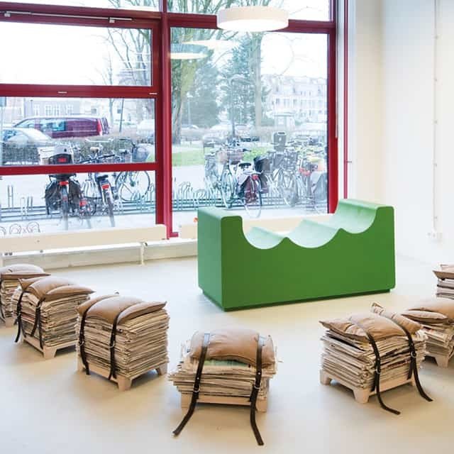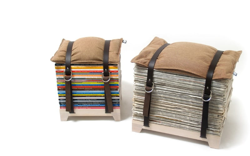 Ma come si può coniugare il piacere di leggere una rivista e la funzionalità assoluta? Ci hanno pensato i designers di Nju Studio che hanno realizzato questa utilissima seduta: si tratta di Hockheimer, ossia un comodissimo sgabello portariviste costituito da una serie di riviste impilate l’una sull’altra, unite da cinghie, che terminano con un cuscino.