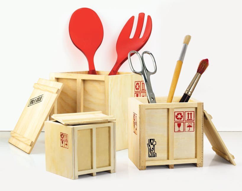 Su dottorgadget.it potete acquistare Inbox Mini Cargo Crates, un set di 3 porta oggetti in legno realizzato da Labyrinth con lo stesso design delle casse usate nelle spedizioni. I box, di tre dimensioni differenti, sono ideali da posizionare sulla scrivania come porta penne, oppure in cucina come porta posate.