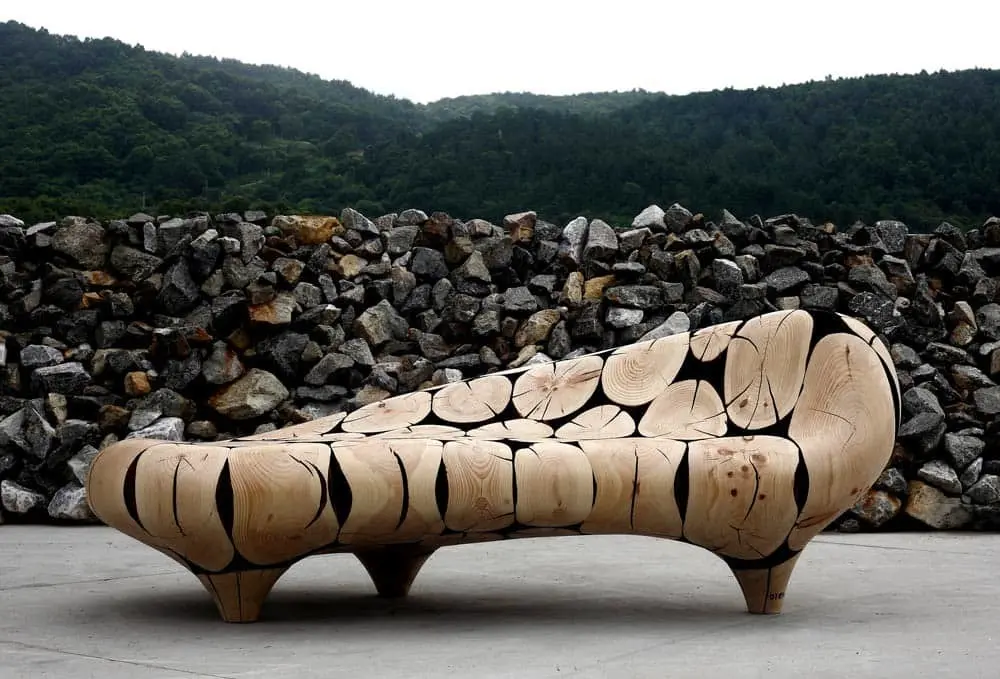 Jaehyo Lee, artista coreano contemporaneo, non si accontenta di scolpire solo forme geometriche ma anche mobili, divani, tavoli e sedie.