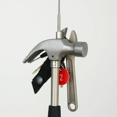 Keyhanger si appende al soffitto e, posizionato in prossimità della porta di ingresso della casa, si può utilizzare come appendi chiavi. Non è escluso, però, un uso alternativo.
