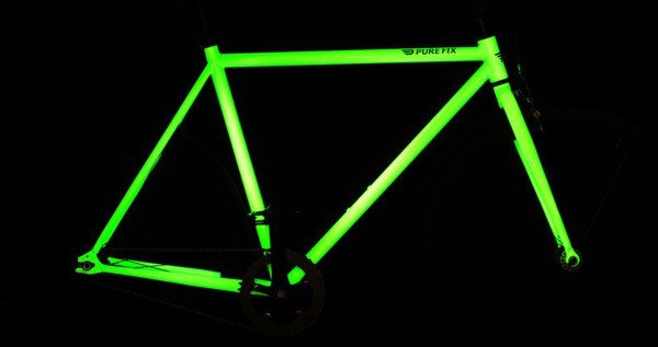 Pure Fix Cycles ha realizzato Kilo Glow-in-the-Dark, una bici che si illumina al buio per una guida più sicura. La vernice si ricarica in un paio di ore quando esposta alla luce solare.
