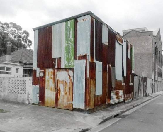 Il progetto di Raffaello Rosselli è rivolto alla riqualificazione di una struttura iconica della periferia australiana, una baracca di lamiera. Il capannone pericolante e fatiscente è stato smontato e sostituito da un’armatura in legno. Una volta eretta la nuova struttura si è provveduto al riutilizzo delle lamiere originali, riassemblate sulle tre facciate.