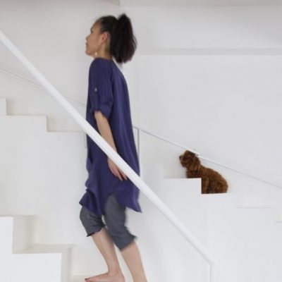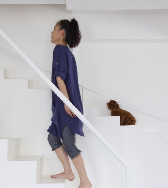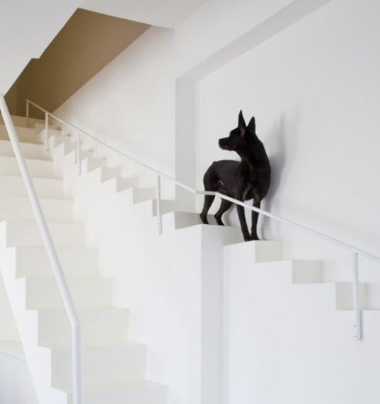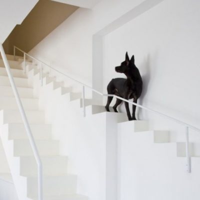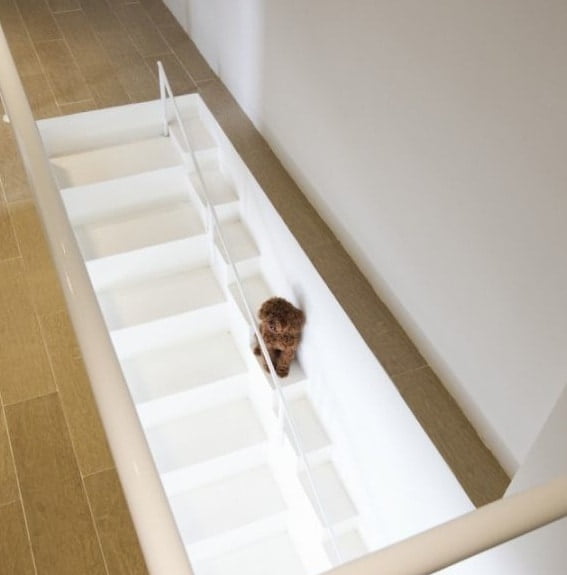 Zero7beach ha ideato la scala per cani, due scalinate all’interno della propria casa, separate da un sottile corrimano, a due altezze diverse: quella per i cani è più alta di quella per le persone.