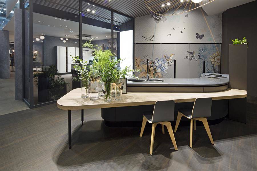 Tavoli, banconi, sedute, ma anche cappe e cucine: in fiera e fuori, il solid surface HI-MACS® non solo ha affermato nuovamente la sua leadership nel mondo dei techno materials, ma ha anche ricondotto sotto ai riflettori la sua caratteristica maggiore, quella della versatilità, che lo rende oggi il supporto ideale al lavoro di progettisti e interior designer, ma anche aziende e allestitori.
