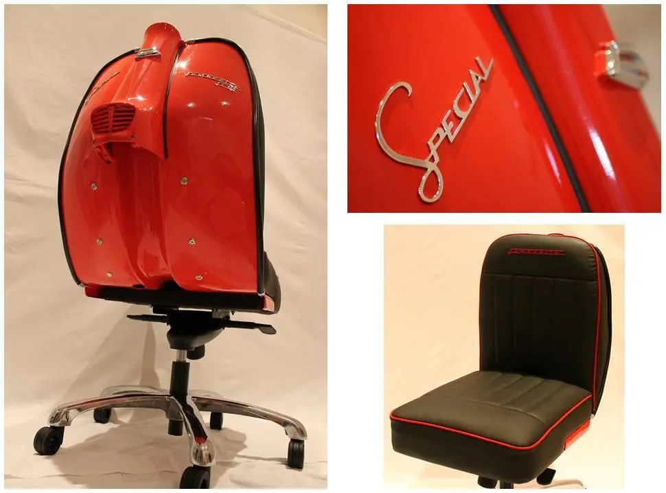 La collezione di sedie da ufficio, firmata Iconic Design, nasce dall’assemblaggio di pezzi di ricambio del noto scooter italiano Lambretta. Ogni sedia è realizzata con materiali di pregio, avendo cura di ogni dettaglio. E’ possibile commissionare la realizzazione di una sedia personalizzata, scegliendo non solo il modello di scooter tra tutti quelli prodotti dal 1957 al 1971, ma anche il colore desiderato, nel caso non si voglia mantenere quello tradizionale.