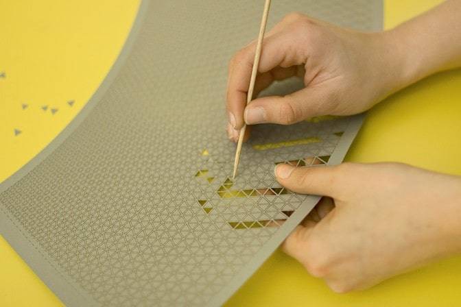 Take off light è una lampada fai da te costituita da due fogli di carta che si possono bucare secondo il proprio gusto e creare giochi di luci e ombre infiniti. Un’infinita varietà di strutture e schemi di luci / ombre. Il paralume è costituito da due fogli di carta con uno schema molto fine che può essere ingrandito a piacimento. Quindi è possibile decidere dove far passare la luce così da ottenere un risultato unico.