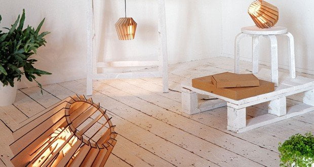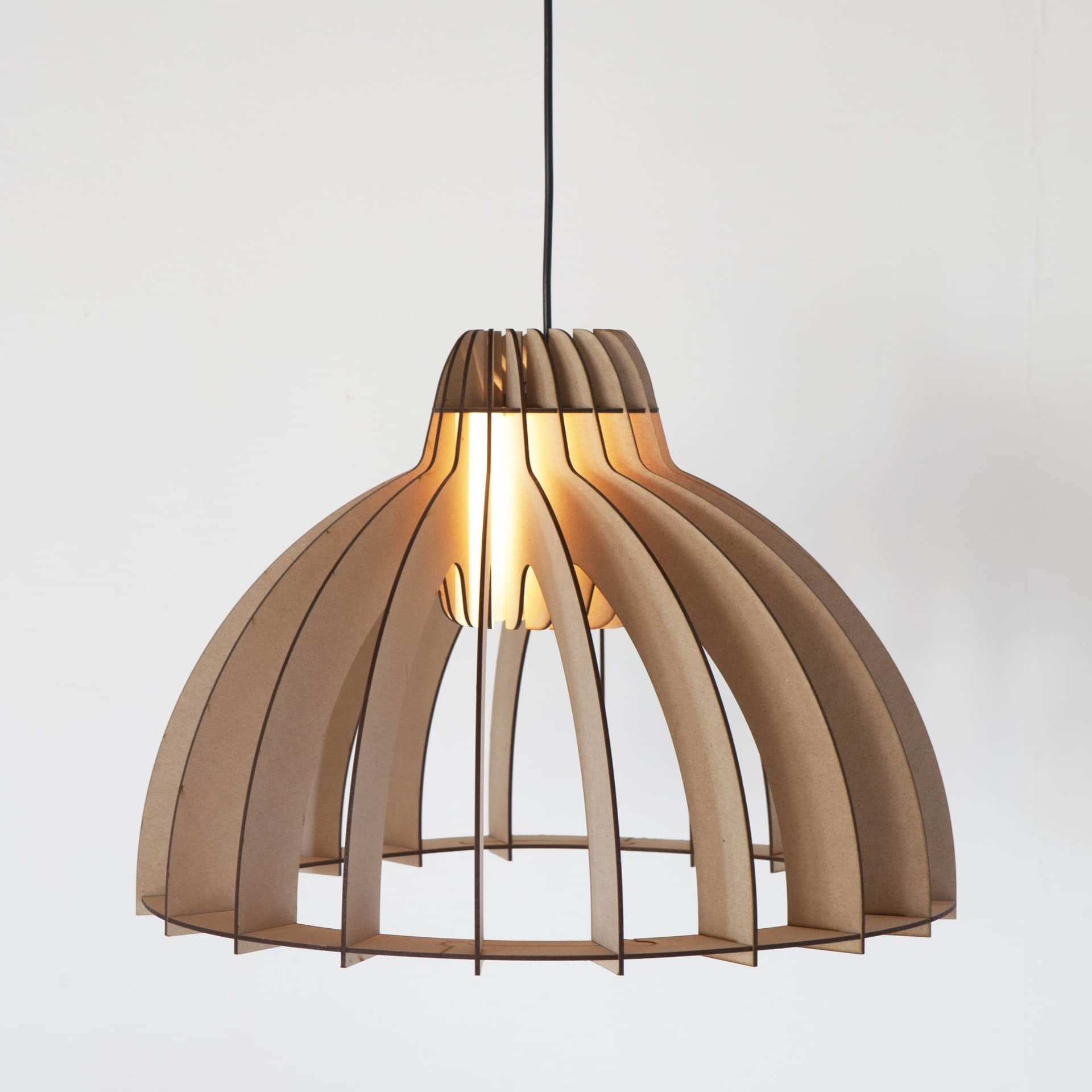Le lampade, in materiale MDF, sono disponibili in diversi modelli, da tavolo e da sospensione.
