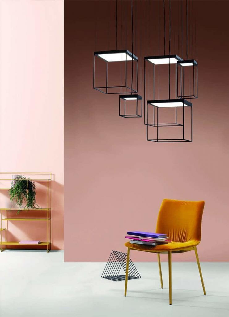 Linee essenziali e leggere, giochi di luce, design pulito e rigoroso per Brassie, un sistema di lampade a sospensione, parallelepipedi in metallo verniciato con illuminazione a pannelli Led. Sostenute da cavi in acciaio e disponibili in diverse forme e dimensioni, le lampade possono essere appese singolarmente oppure combinabili in gruppi di tre, quattro o cinque per uno scenografico effetto, un sorprendente gioco di linee e volumi dal tono inequivocabilmente contemporaneo.
