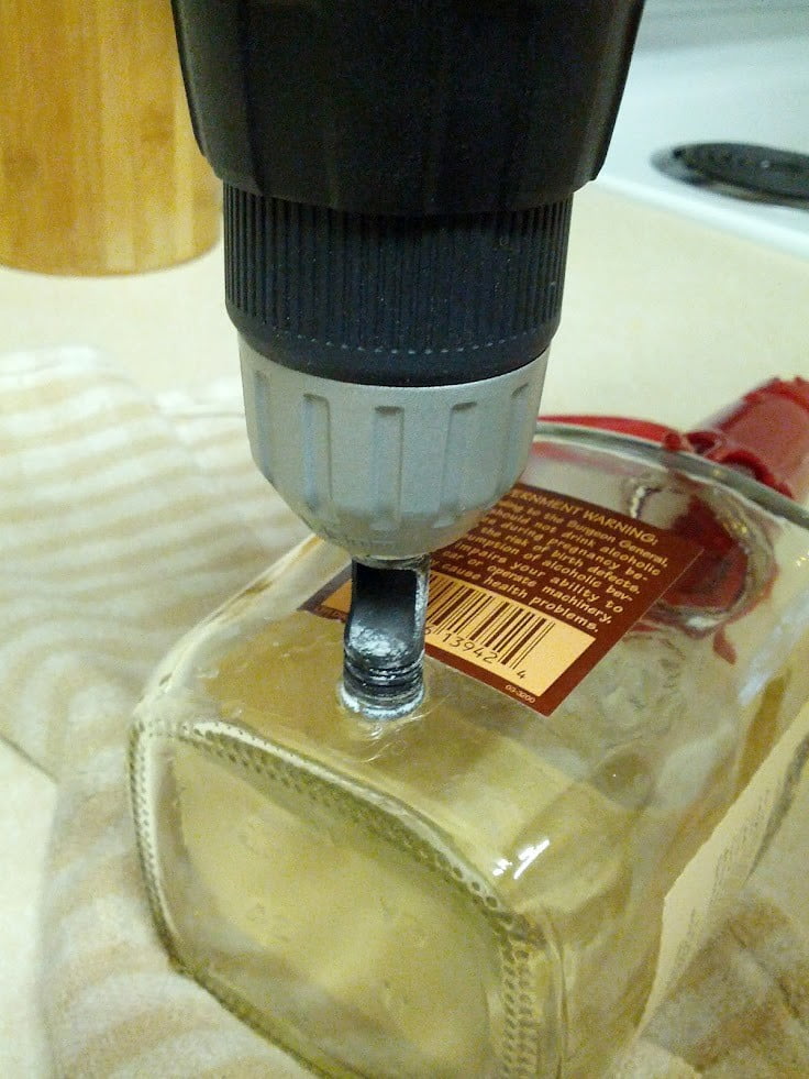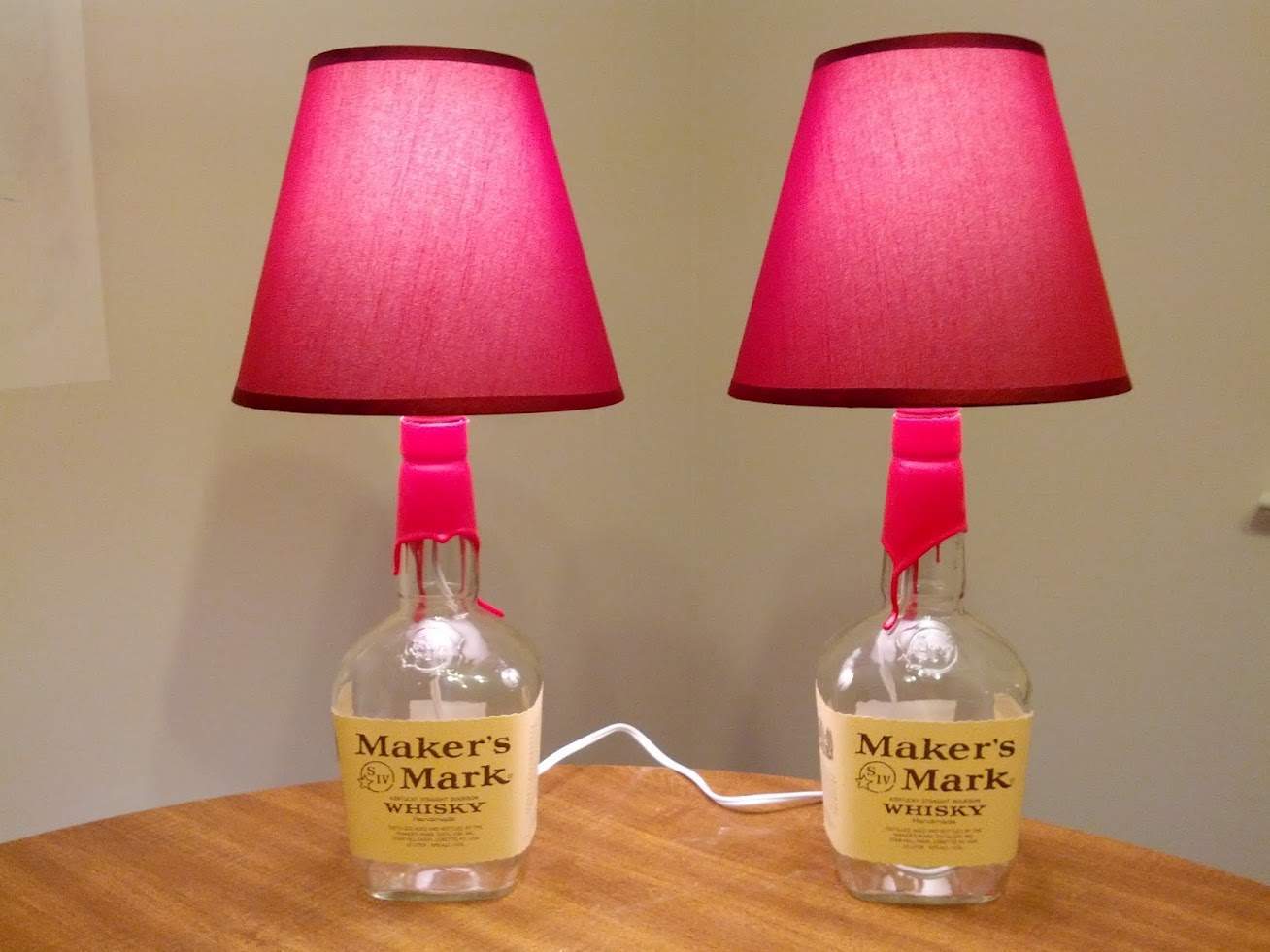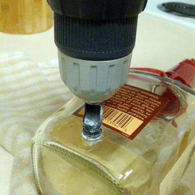 Qualche materiale si deve necessariamente acquistare, ma il pezzo forte per realizzare queste lampade da tavolo sono le bottiglia di vetro da whisky, rigorosamente riciclate. La bottiglia è utilizzata come struttura di base della lampada. Ciò che quindi bisogna procurarsi è il cappello e la lampadina con relativo supporto, da fissare in corrispondenza del tappo. Per il passaggio del cavo si pratica un foro sul retro della bottiglia, usando una specifica punta da vetro.