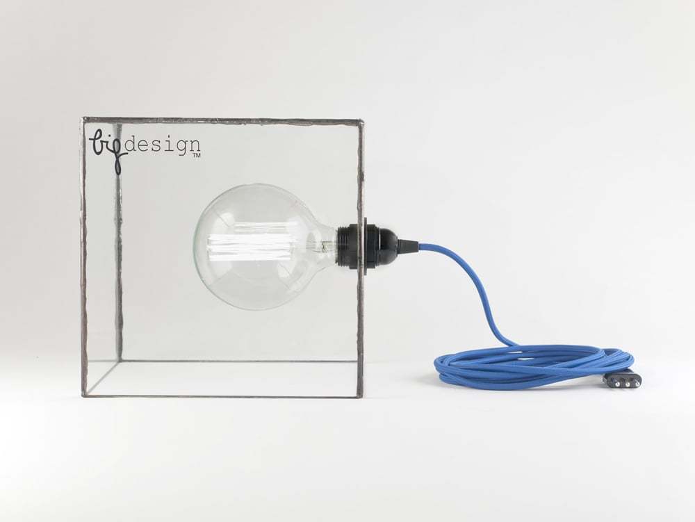 L’esaedro, simbolo platonico della terra, formato da 6 facce quadrate è riprodotto con 5 quadrati di vetro saldati con la tecnica Tiffany. La lampada è dotata di lampadina ad incandescenza.