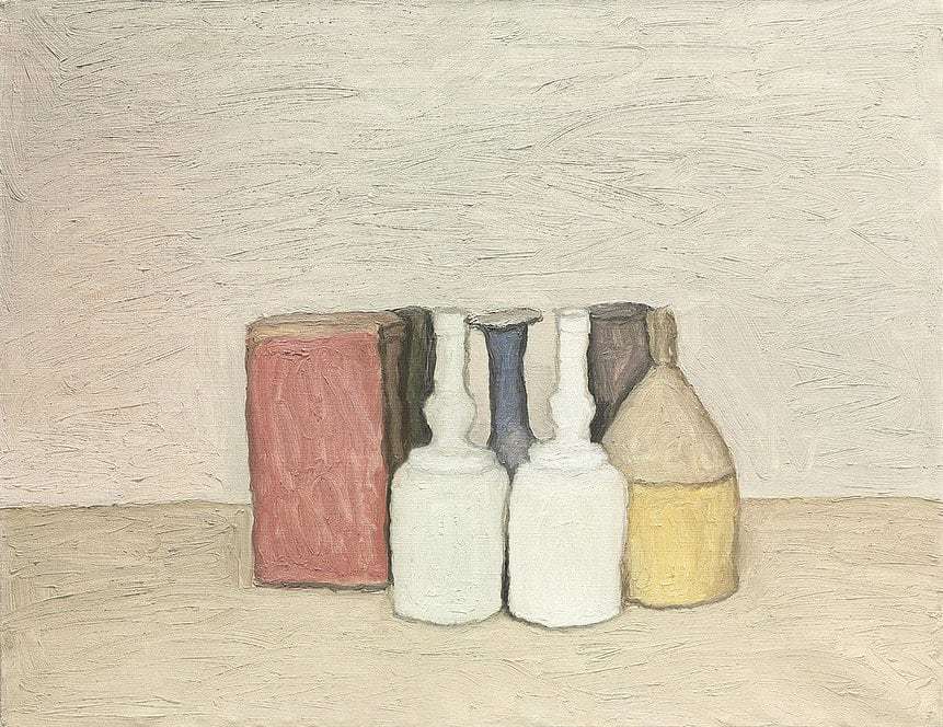 La luce, insieme al sapiente uso del colore, è l’elemento essenziale attraverso cui il maestro riusciva ad esaltare oggetti semplici e di uso quotidiano, come le bottiglie protagoniste delle sue tele.