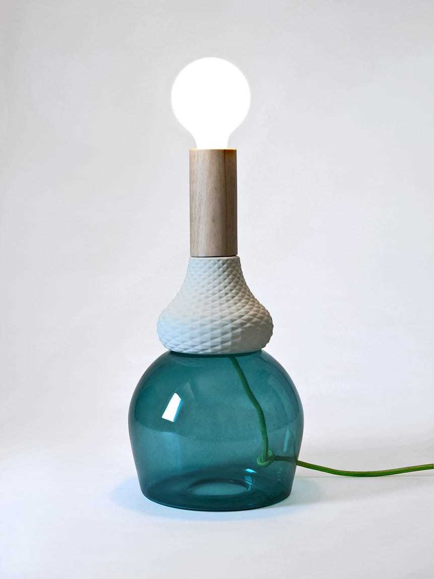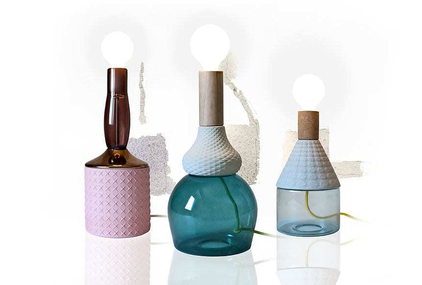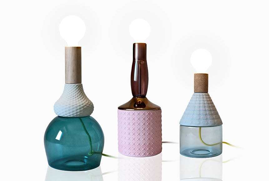 La luce rimane l’elemento centrale degli oggetti realizzati da Elena Salmistraro, a tal punto da diventare parte degli stessi: le bottiglie, estratte dalla tela, diventano lampade.