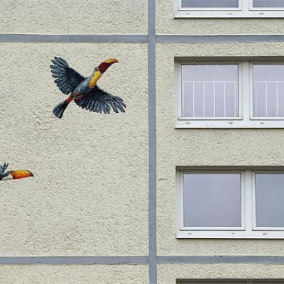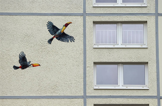 Largest Mural by Citecreation 10 Set 2013 Antonio Italia Total0Steve Rolle e altri artisti di Citecreation hanno realizzato 22 mila metri quadrati di murales lungo la facciata degli appartamenti Wohngenossenschaft Soldaritaet di Berlino. Le immagini si ispirano al vicino zoo. Via designyoutrust.com