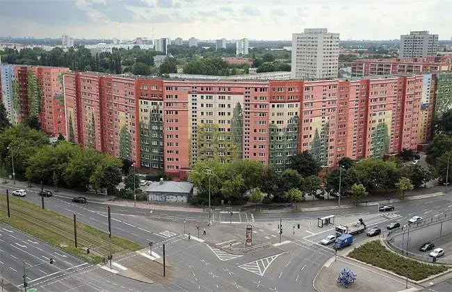 Steve Rolle e altri artisti di Citecreation hanno realizzato 22 mila metri quadrati di murales lungo la facciata degli appartamenti Wohngenossenschaft Soldaritaet di Berlino. Le immagini si ispirano al vicino zoo.