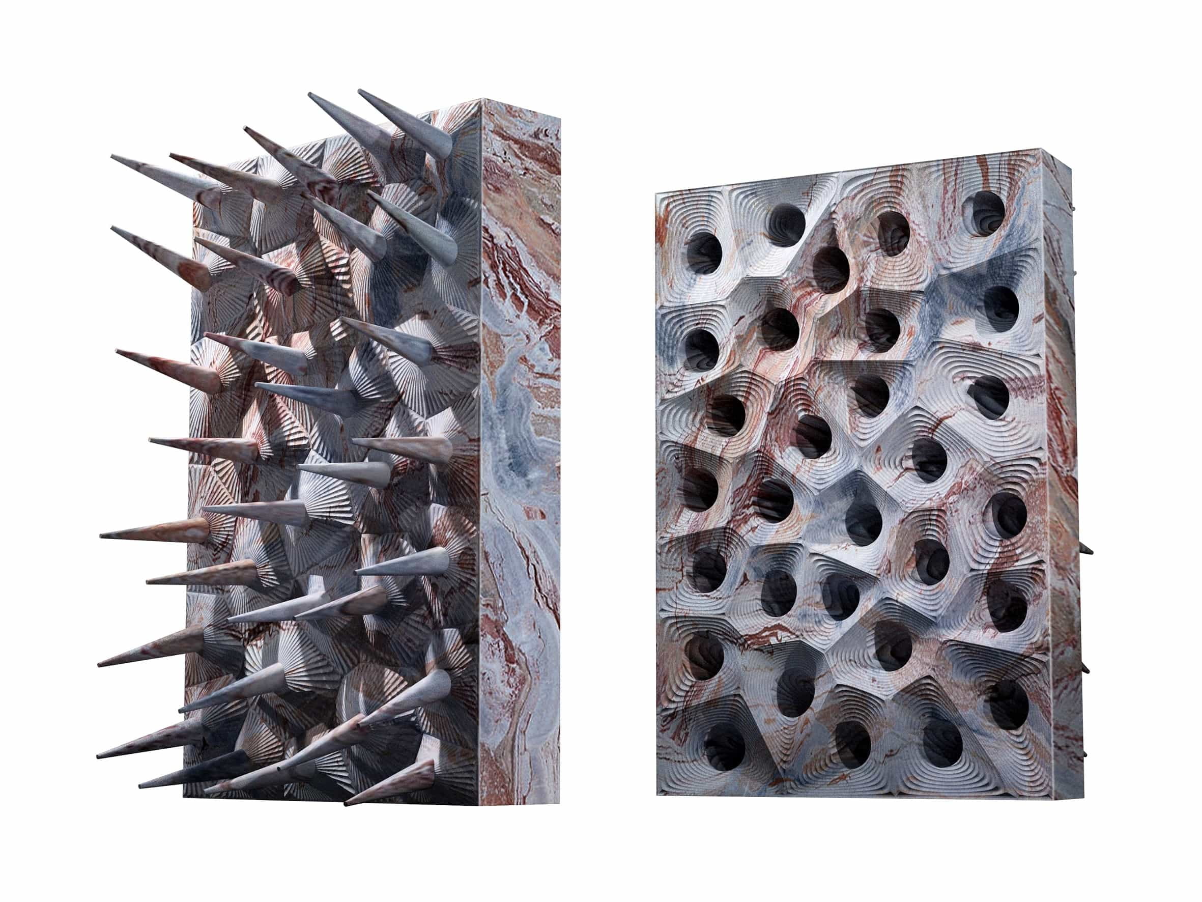 Cinque opere sperimentali in marmo di altissimo livello, progettate con software parametrici e realizzate esclusivamente con macchine a controllo numerico, per dimostrare che oggi è possibile emozionare con la pietra e spingersi a livelli inimmaginabili anche senza la mano diretta dell’uomo.