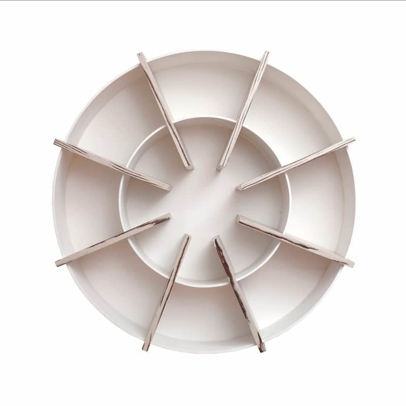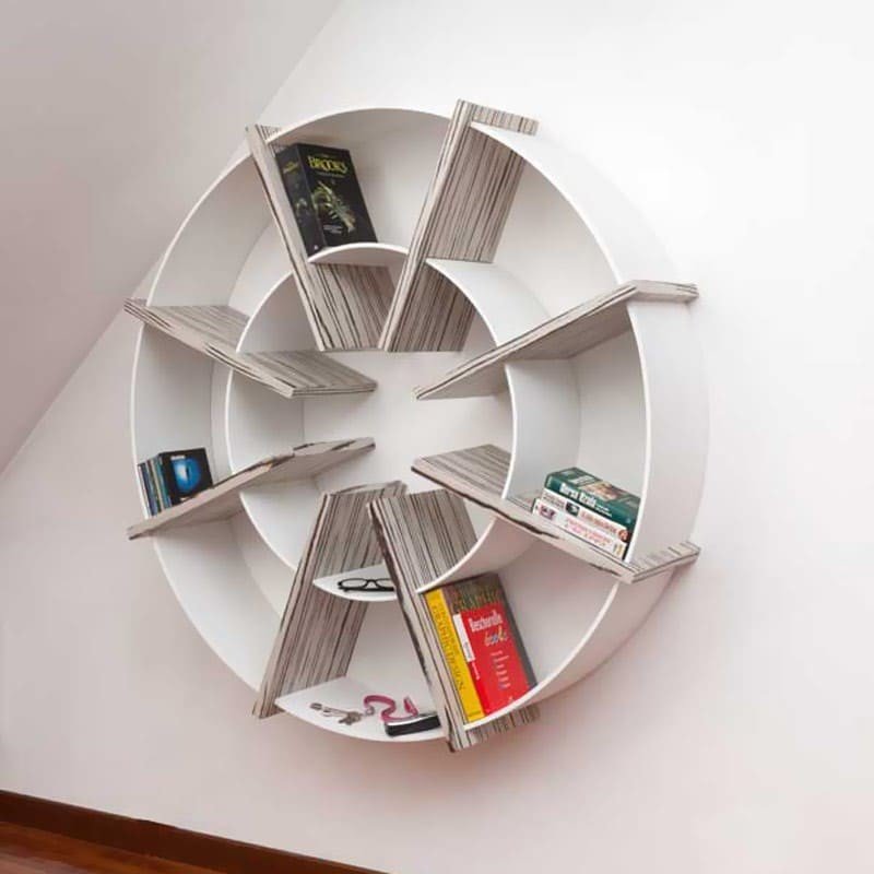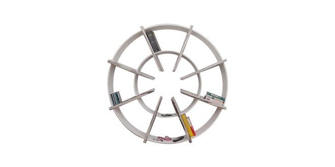 La libreria Giotto a parete, elegante e minimal, ispirata al cerchio perfetto di Giotto. La struttura circolare a parete decora in modo originale l’ambiente, dando la possibilità di disporre i libri e le riviste in un modo particolare e dinamico.