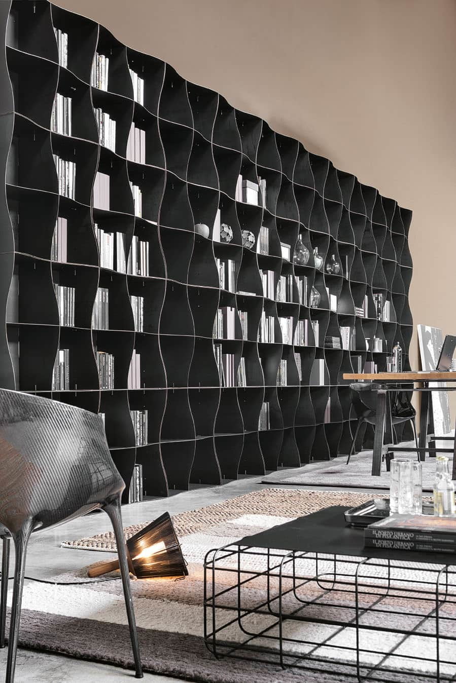 Iron-ic è una libreria dall’architettura modulare in ferro naturale basata sull’assemblaggio ad incastro dei componenti di ogni modulo. I lati curvilinei conferiscono alla libreria l’originale e inconfondibile look ondeggiante, un armonioso zigzagare istintivamente accattivante che si armonizza in ogni tipo di ambiente, dal classico al moderno e in contesti sia home che contract.