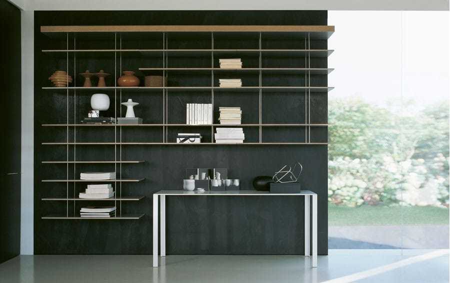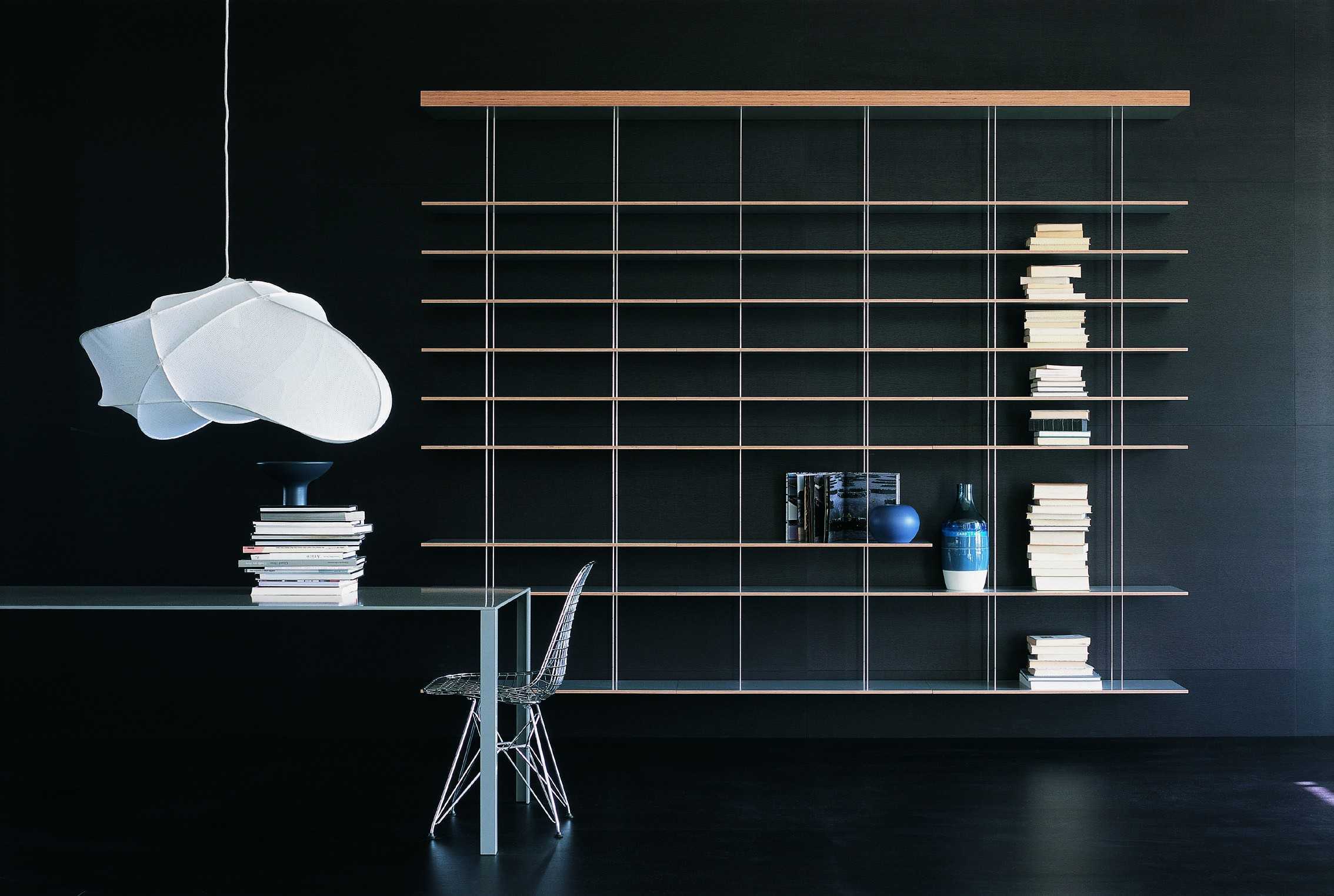 Leggera, elegante, essenziale: è Graduate, la libreria sospesa disegnata da Jean Nouvel per Molteni, un complemento che arreda con discrezione, esaltando lo spazio espositivo.