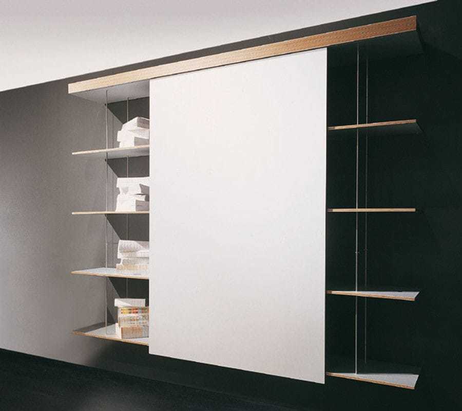 La struttura minimalista appare come sospesa nel vuoto, sorretta da chissà quale artificio. Il design si risolve in un astuto gioco di trasparenze e sospensioni, che privilegia la funzionalità, valorizza gli oggetti esposti e lascia ampio respiro all’ambiente circostante.