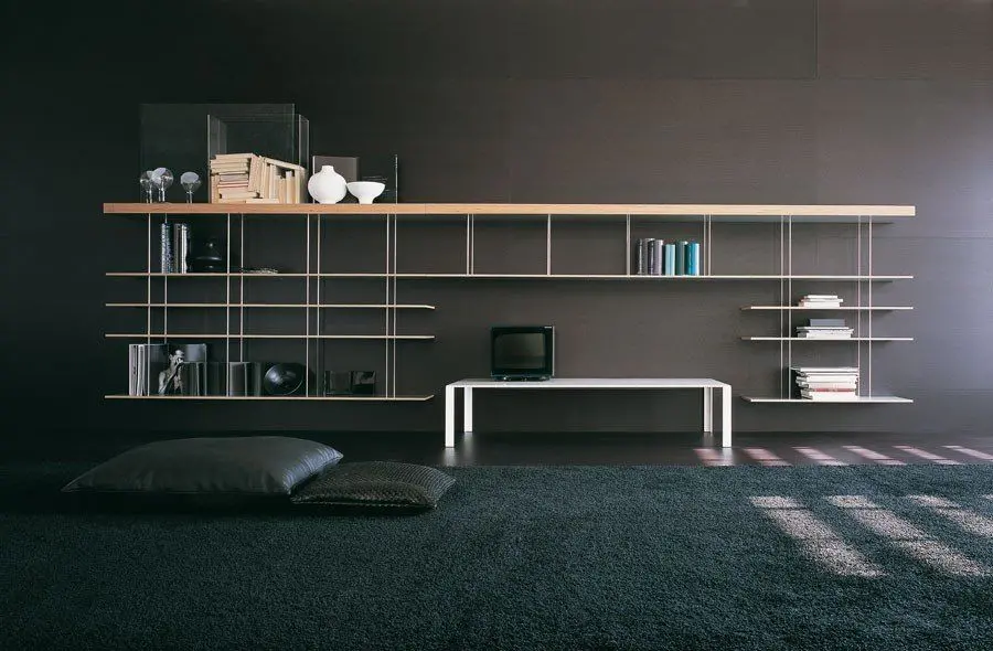 Leggera, elegante, essenziale: è Graduate, la libreria sospesa disegnata da Jean Nouvel per Molteni, un complemento che arreda con discrezione, esaltando lo spazio espositivo.