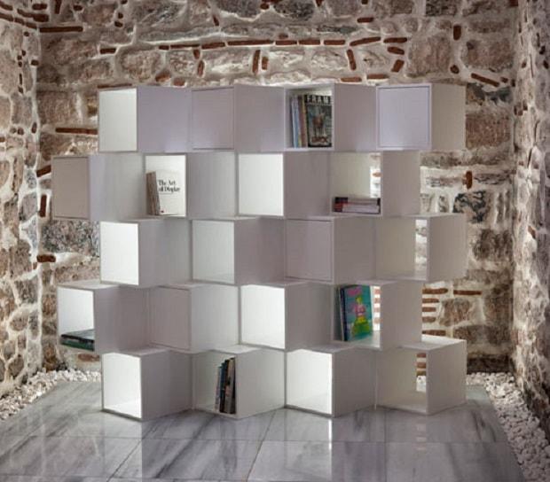 Una libreria a cubi dalla linea moderna, per arredare l’ambiente e sistemare con originalità libri e riviste.