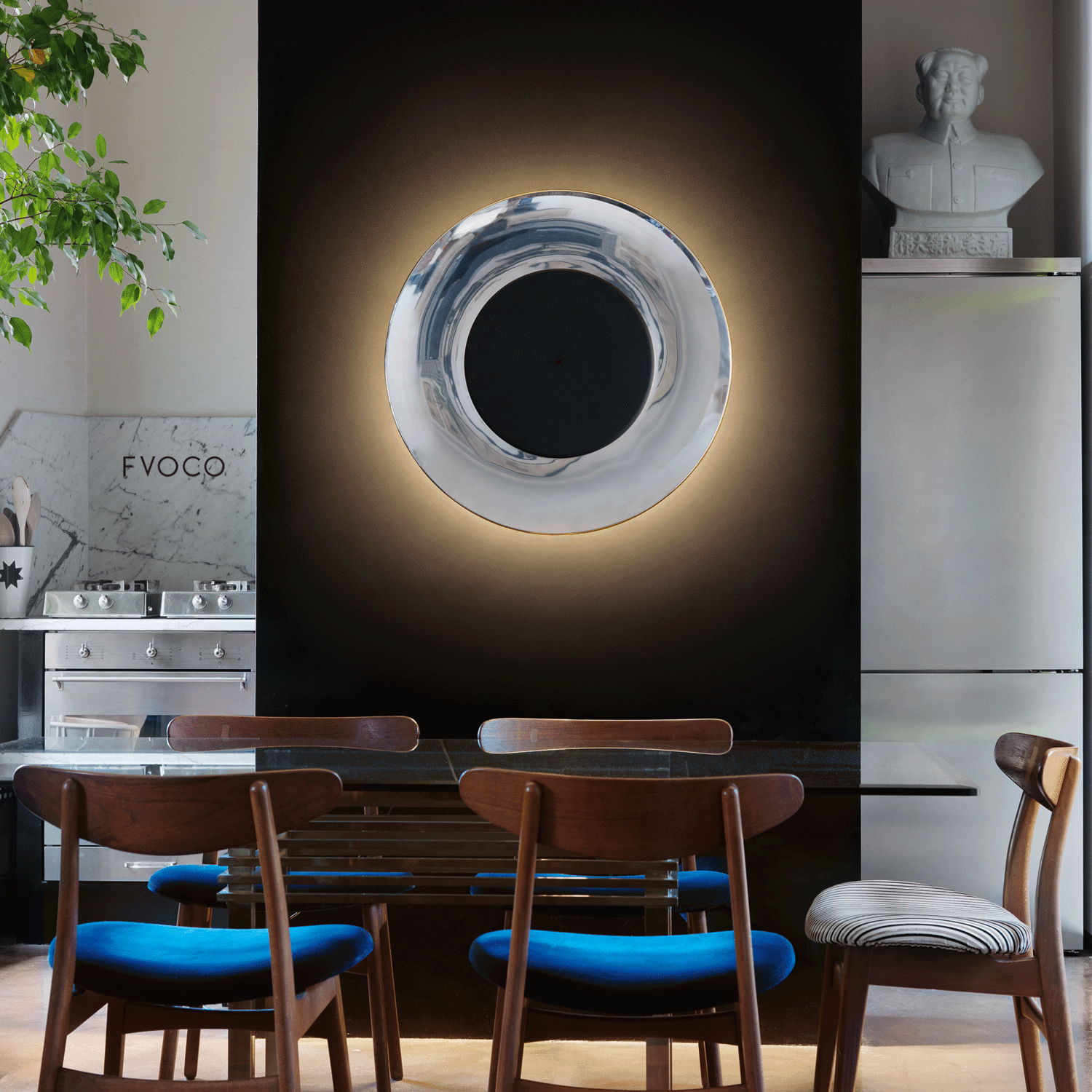 Lunaire è la lampada a parete firmata Ferréol Babin per il noto marchio italiano Fontana Arte. La lampada da parete Lunaire è composta da un riflettore in metacrilato trasparente sabbiato e un disco frontale in alluminio verniciato.