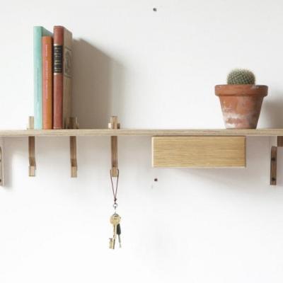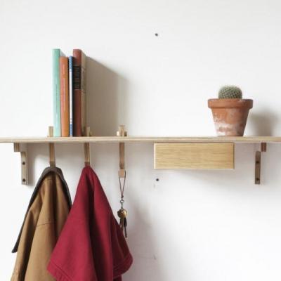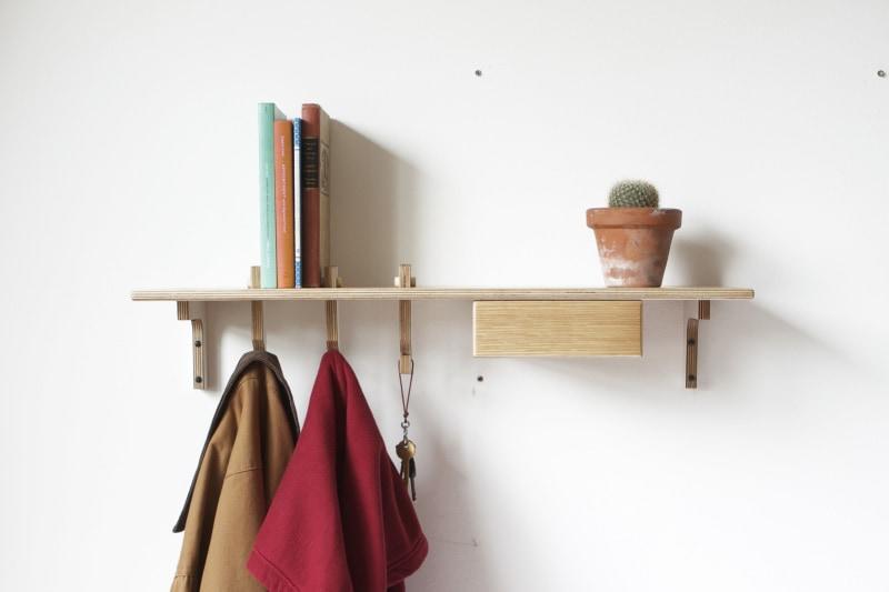 Hook Shelf soddisfa nel contempo le esigenze di ordine e di praticità. La mensola non ingombra ed è dotata di ganci per appendere le giacche e cassetto per custodire le chiavi; in sostanza, non crea ingombro, ma dispone di tutti i comparti e utili per riporre quegli oggetti che generalmente si portano con sé quando si esce di casa e che per comodità si posano in prossimità dell’ingresso.