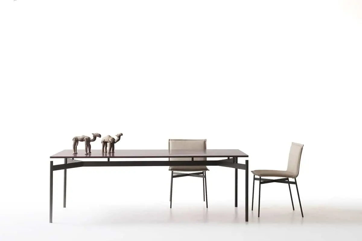 Dinamica linearità per il nuovo tavolo DUB caratterizzato dal piano in MDF che sembra lievitare sulla struttura in acciaio verniciato. Il modello è disponibile nella variante laccata opaca in diversi colori oppure in rovere verniciato o termotrattato, per arredare la casa con personalità secondo il proprio stile.