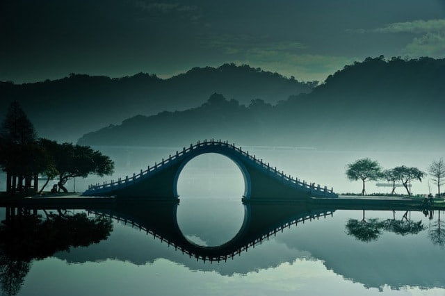 Moon Bridge in Taiwan 13 Mar 2013 Antonio Italia Total0Moon Bridge è un ponte pedonale in legno costruito nel Dahu Park di Taipei, nel nord di Taiwan. L’acqua cristallina del Grande Lago consente un riflesso perfetto, quasi magico, ideale per una vacanza rilassante. Foto di bbe022001.Via unusualplaces.org