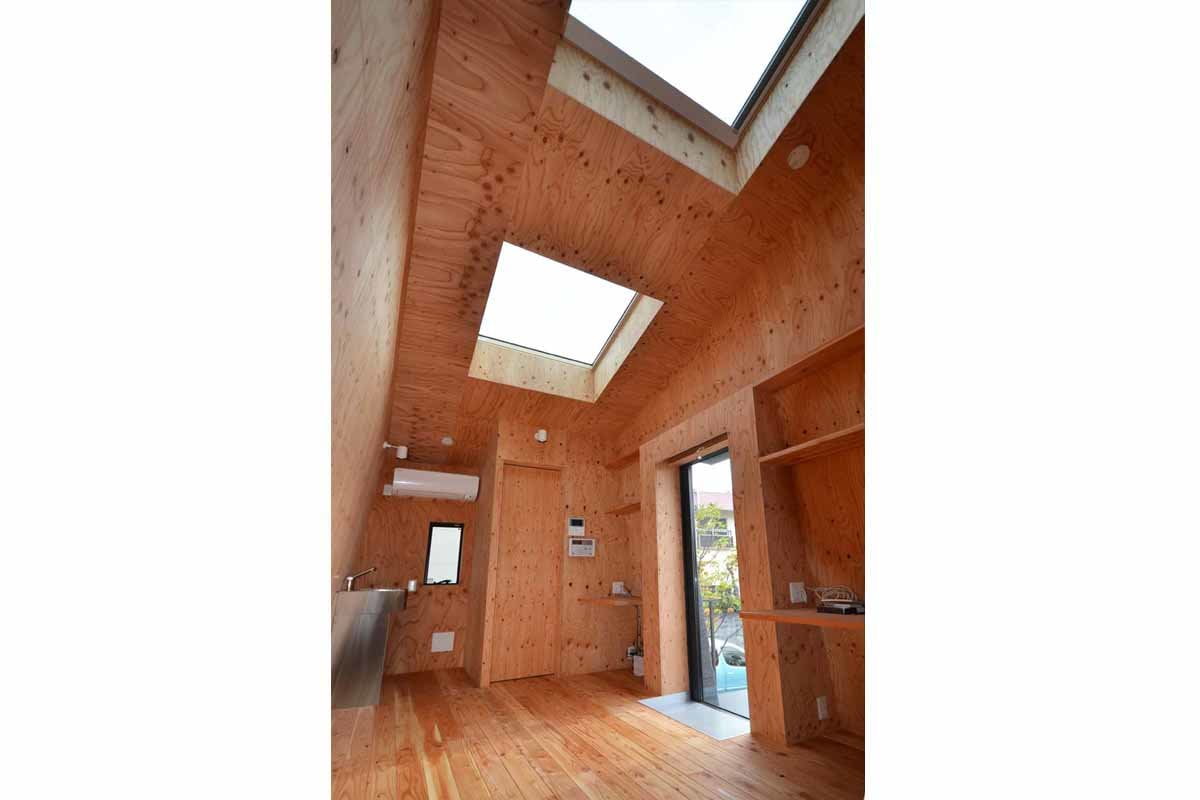 Progettata dagli architetti giapponesi Hiroki e Tomoko Sejiguchi, la casa ha una struttura compatta in legno, studiata per soddisfare due specifiche esigenze: disporre di un comodo e spazioso posto auto, adatto ad ospitare una vettura di grandi dimensioni a quattro ruote motrici, e vivere al riparo da sguardi indiscreti.