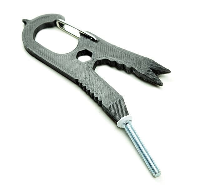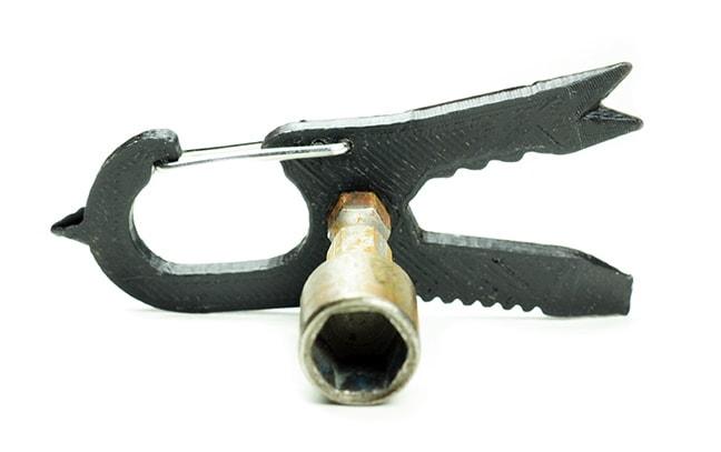 Un pratico moschettone consente di agganciare Screwpop ad un portachiavi o ad un passante, per portarlo sempre con sé. Insomma, sarà come avere una cassetta degli attrezzi al seguito, con il vantaggio di non dover sopportare né pesi né ingombro.