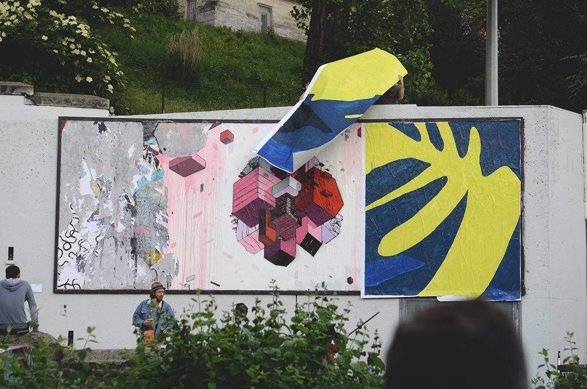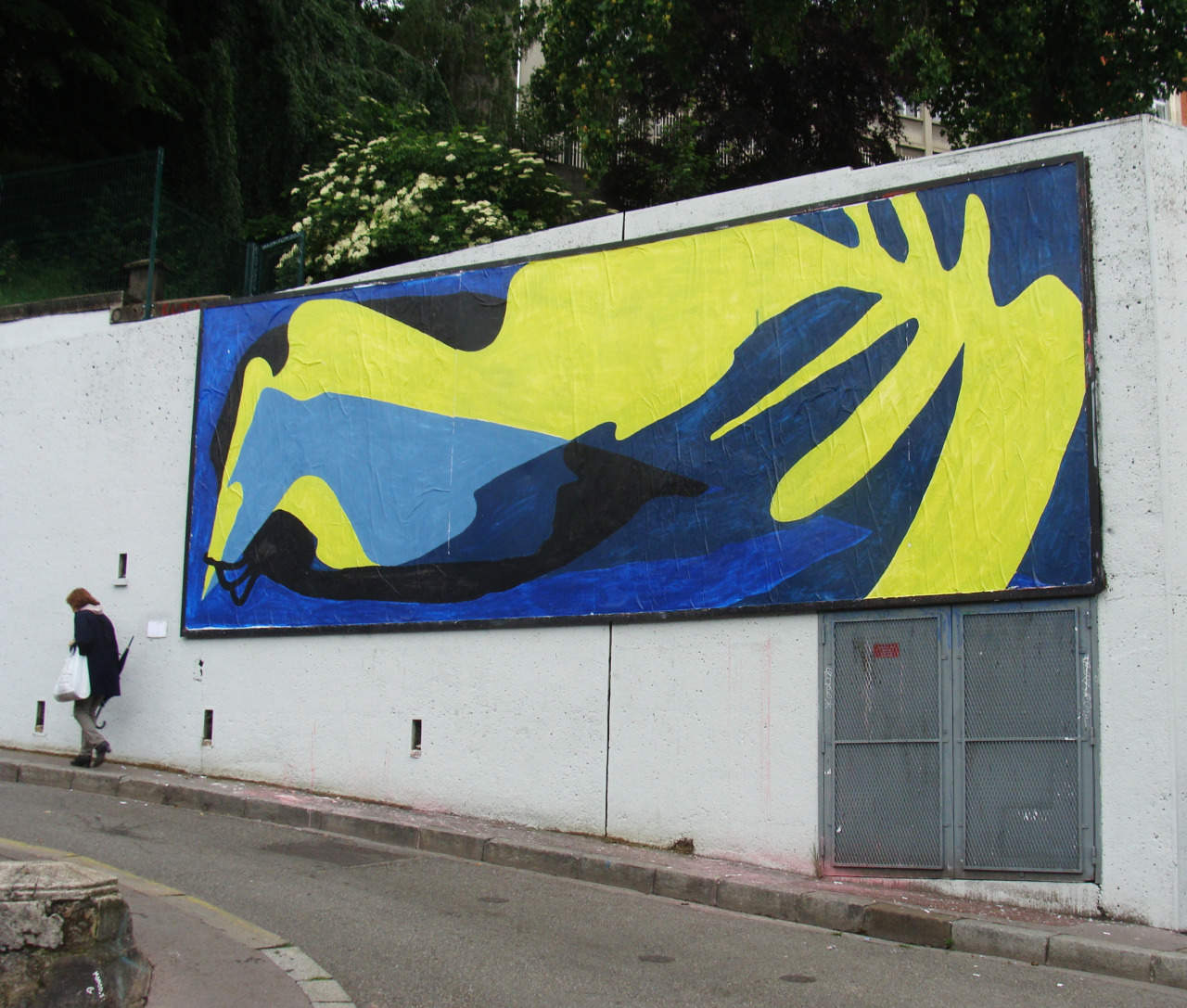 Saint Etienne, Francia, rue du Frère Maras. E’ qui che ogni mese artisti selezionati si mettono all’opera per vestire ad arte le MUR, un grande supporto a parete per cartelloni pubblicitari.