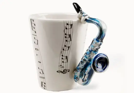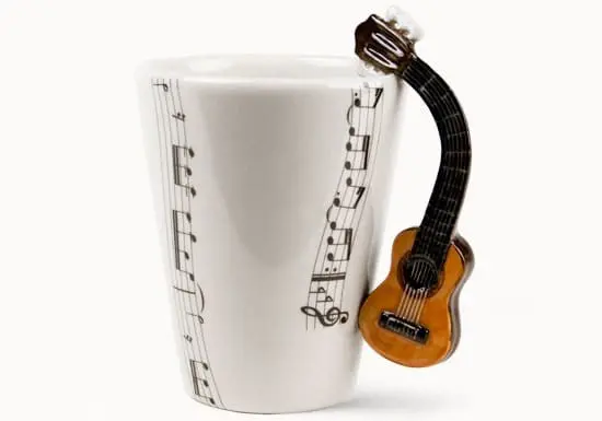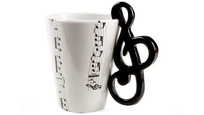 Simpatica serie di tazze da caffè lavorate e dipinte a mano ispirate al mondo della musica, disponibili qui.