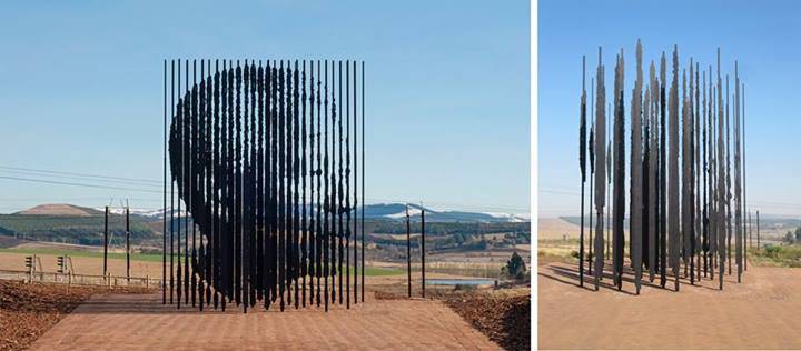L’artista sudafricano Marco Cianfanelli ha realizzato nel 2012 (50° anniversario del suo arresto) questo fantastico monumento dedicato a Nelson Mandela: un gioco questo spettacolare monumento in onore di Nelson Mandela. Questo suo ritratto si trova a circa 90 km a sud di Durban, in Sud Africa, ed è composto da 50 colonne in acciaio che simboleggiano le sbarre della prigione.
