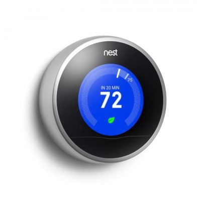 Nest thermostat è il termostato intelligente prodotto da Nest Labs, oggi acquisita da Google per 3,2 miliardi di dollari, in grado di auto regolarsi in base ai dati acquisiti dalle preferenze dell’utilizzatore. Ha una forma circolare con un display convesso dove viene mostrata la temperatura, la sua particolarità è che cambia colore in funzione della parete dove viene posizionato. Acquistabile su store.nest.com per 249$.