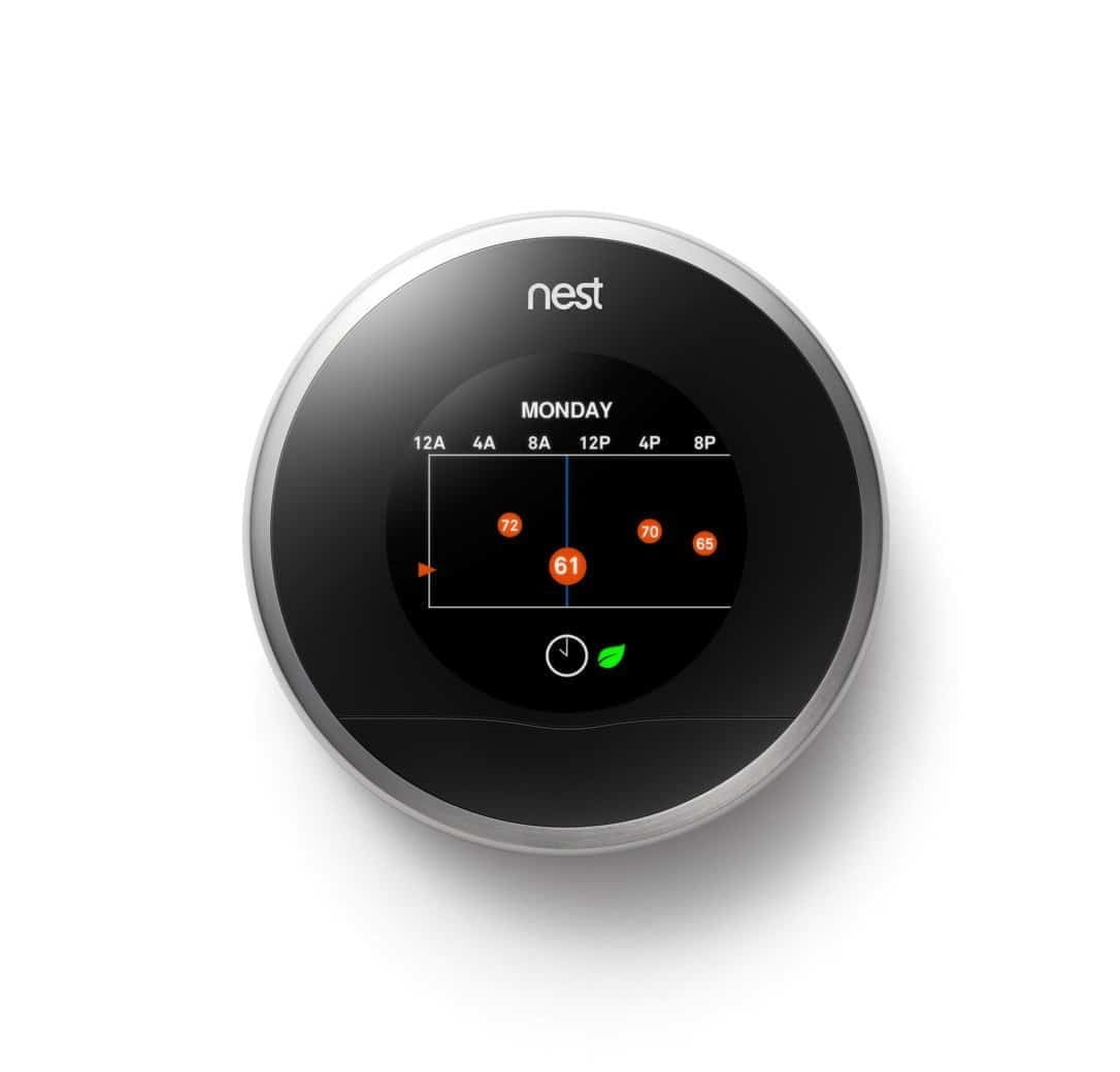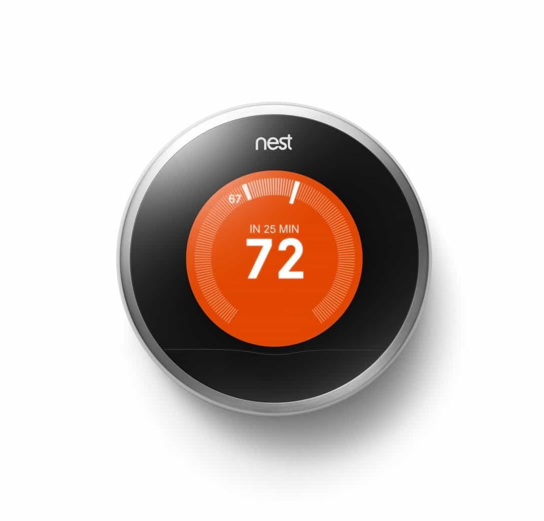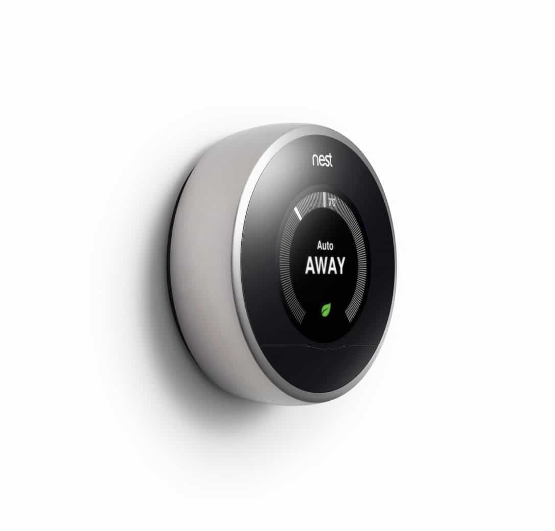 Nest thermostat è il termostato intelligente prodotto da Nest Labs, oggi acquisita da Google per 3,2 miliardi di dollari, in grado di auto regolarsi in base ai dati acquisiti dalle preferenze dell’utilizzatore. Ha una forma circolare con un display convesso dove viene mostrata la temperatura, la sua particolarità è che cambia colore in funzione della parete dove viene posizionato. Acquistabile su store.nest.com per 249$.